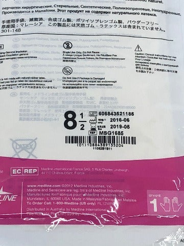 - Medline MSG1685 Synthetic Polyisoprene Gloves Size 8 ~ Lot of 48