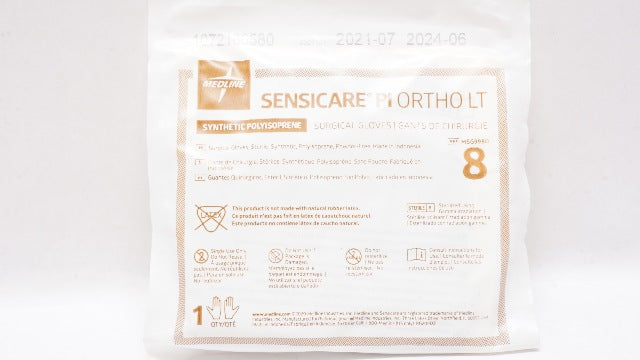 - Medline MSG9980 Sensicare Pi Ortho LT Synthetic Polyisoprene Surgical Gloves 8