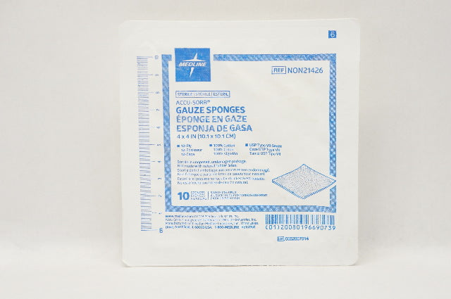 - Medline NON21426 ACCU-SORB Gauze Sponges 12-Ply, 4 x 4 inch - Pack of 10 ~ Lot of 45
