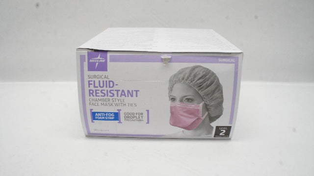 - Medline NON27382FR Surgical Fluid-Resistant Face Mask w/Ties Level 2 - Box of 50