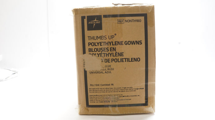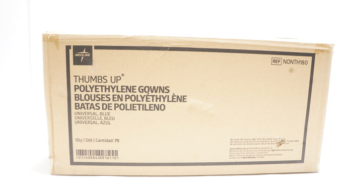 - Medline NONTH180 Thumbs Up Polyethylene Gowns, Universal, Blue - Box of 75