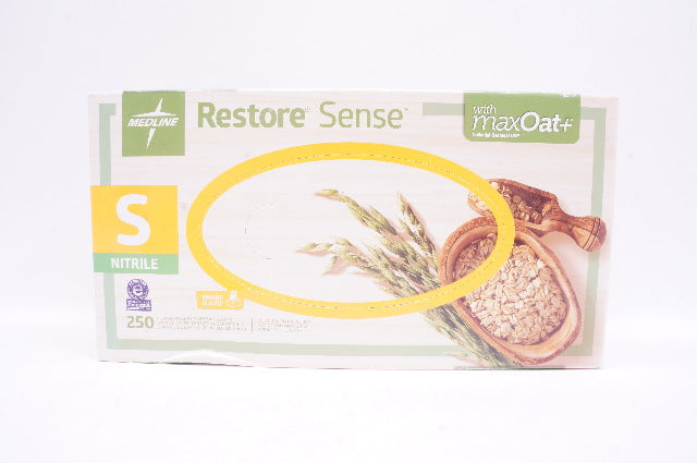 - Medline OAT2584 Restore Sense Powder-Free Nitrile Exam Gloves, S - Box of 250