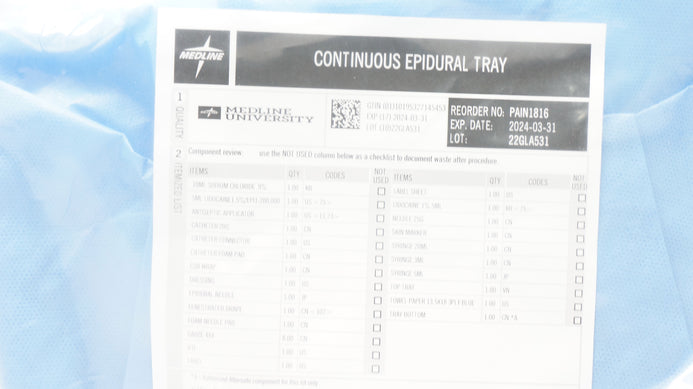 - Medline PAIN1816 Continuous Epidural Tray (x)