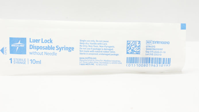 - Medline SYR110010 Luer Lock Disposable Syringe Without Ndle 10mL