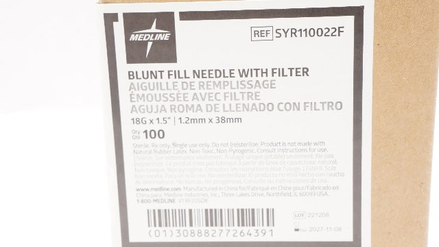 - Medline SYR110022F Blunt Fill Ndle with Filter 18G x 1.5inch - Box of 100