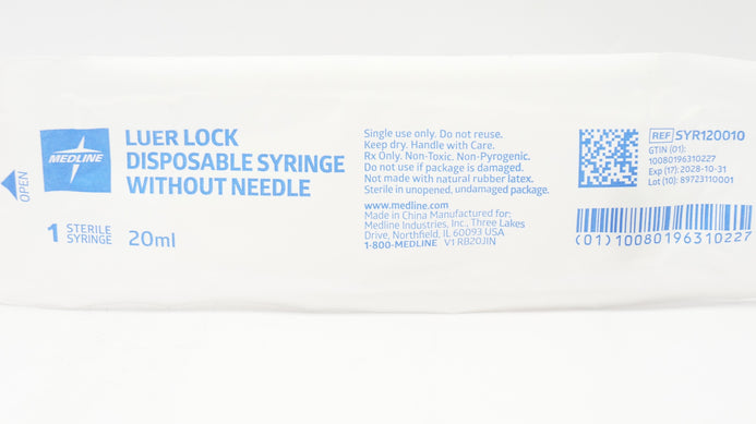 - Medline SYR120010 Luer Lock Disposable Syringe Without Ndle 20ml