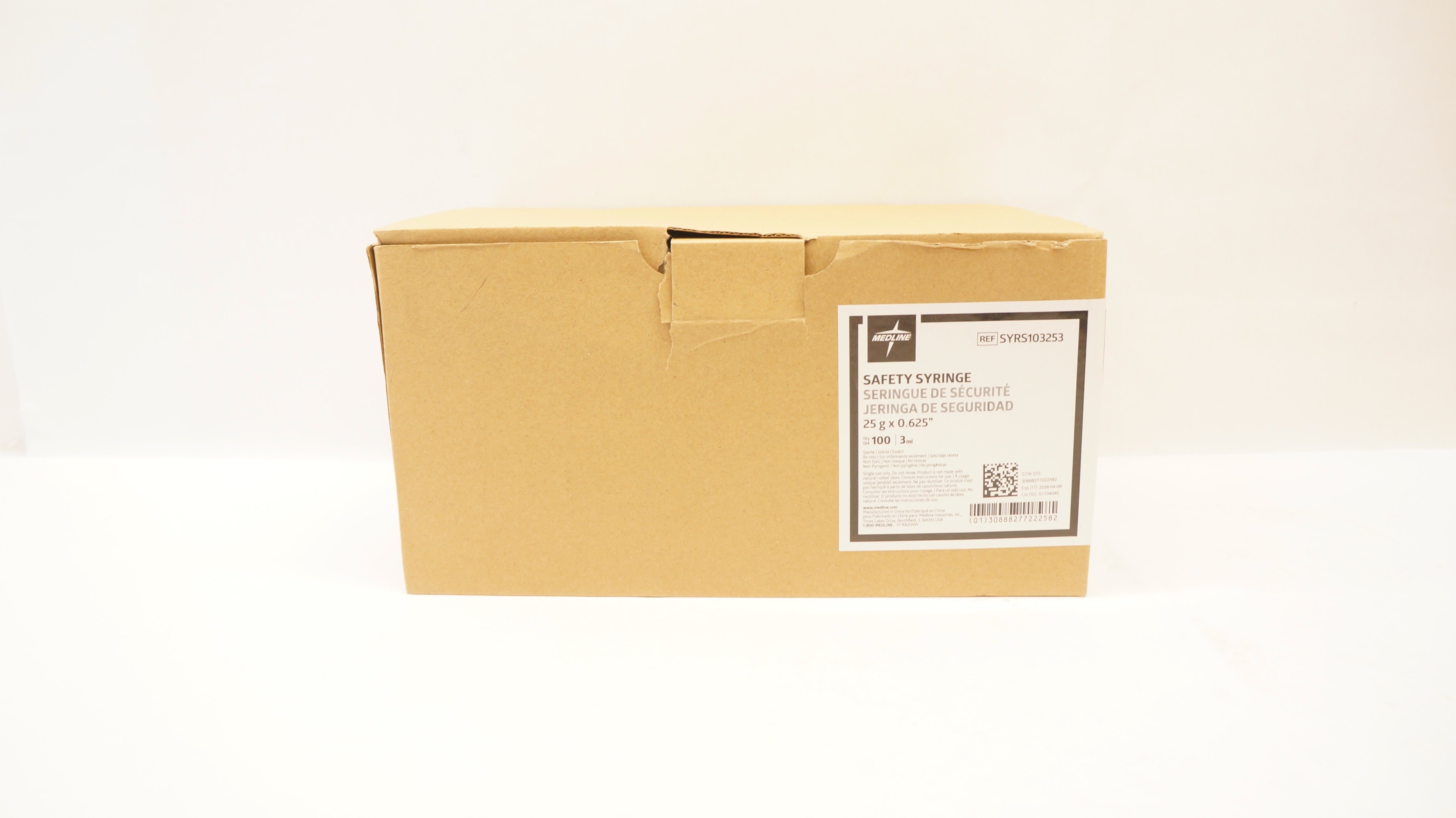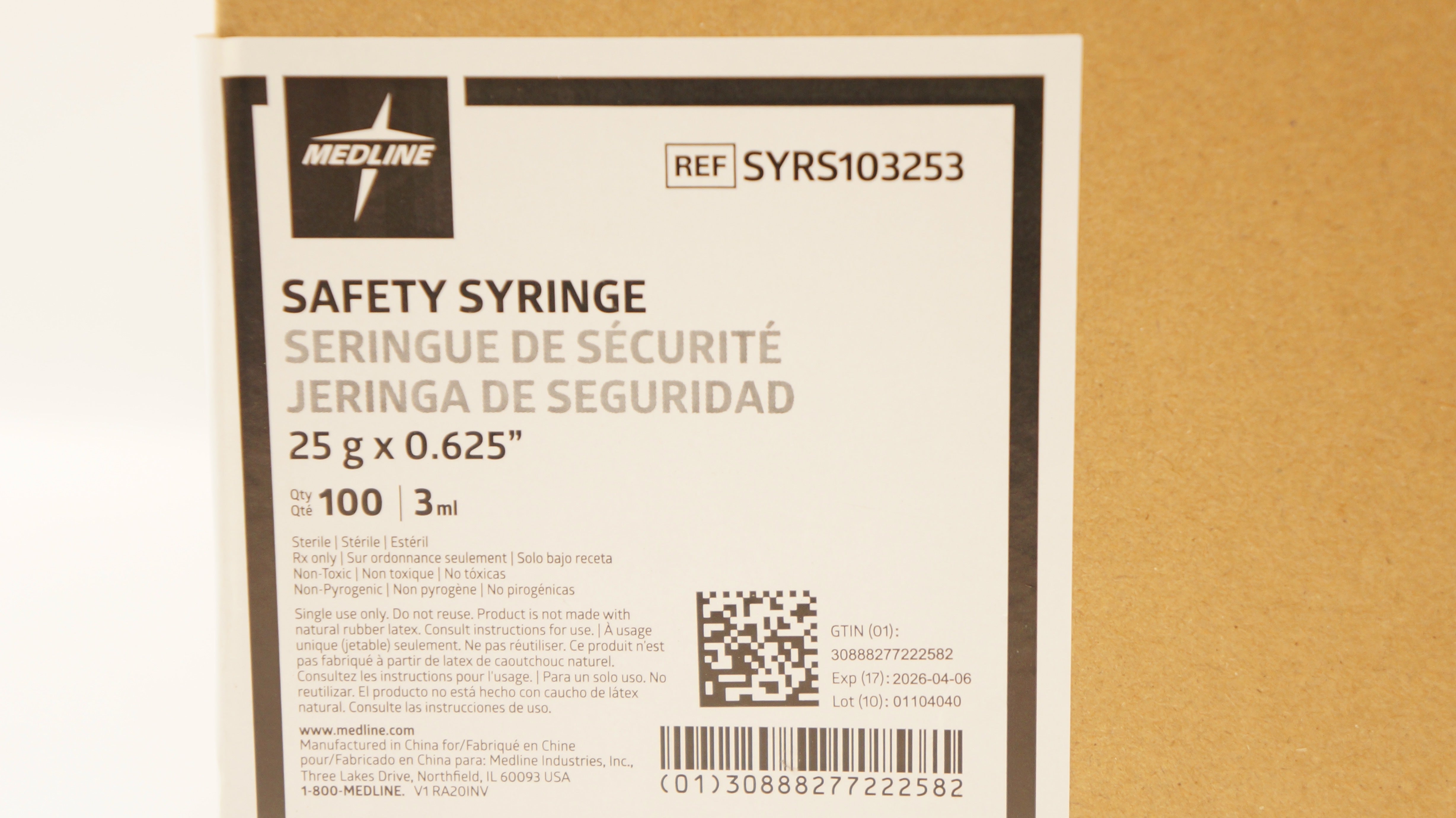 - Medline SYRS103253 Safety Syringe 25g x 0.625inch 3ml - Case of 100