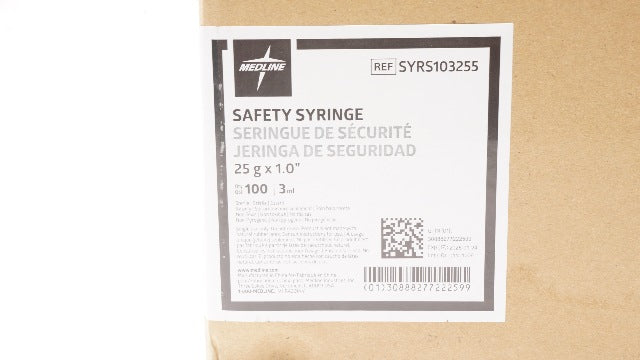 - Medline SYRS103255 Safety Syringe 25g x 1.0inch - Box of 100