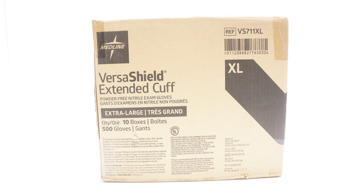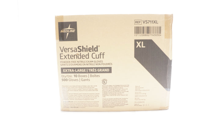 - Medline VS711XL VersaShield Extended Cuff Powder-Free Exam Gloves XL - Box of 50