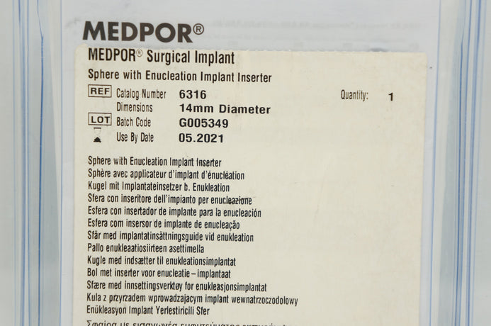 - Medpor 6316 Surgical Implant Sphere with Enucleation Implant Inserter 14mm (x)