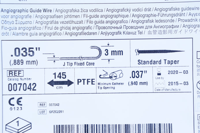 - Medtronic 007042 Angiographic Guide Wire .035inx3mm, 145cm PTFE, Cath .037in (x)
