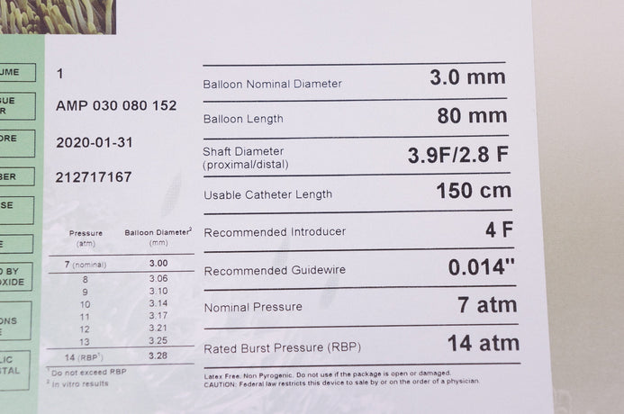 - Medtronic 030080152 Invatec Amphirion Deep OTW PTA Balloon Cath. 0.014in. 3mm(x)