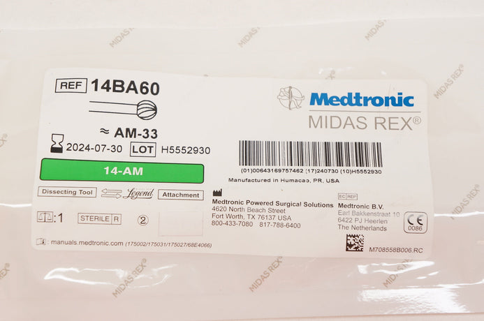 Medtronic 14BA60 Midas Rex Legend Ball Tool 14cm, 6mm Ball Fluted