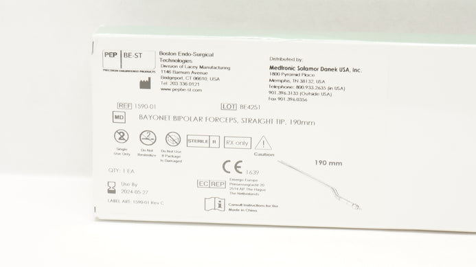 Medtronic 1590-01 Bayonet Bipolar Forceps, Straight Tip, 190 mm (x)