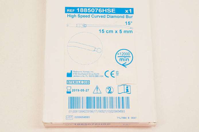 Medtronic 1885076HSE High Speed Curved Diamond Bur 15cm x 5mm