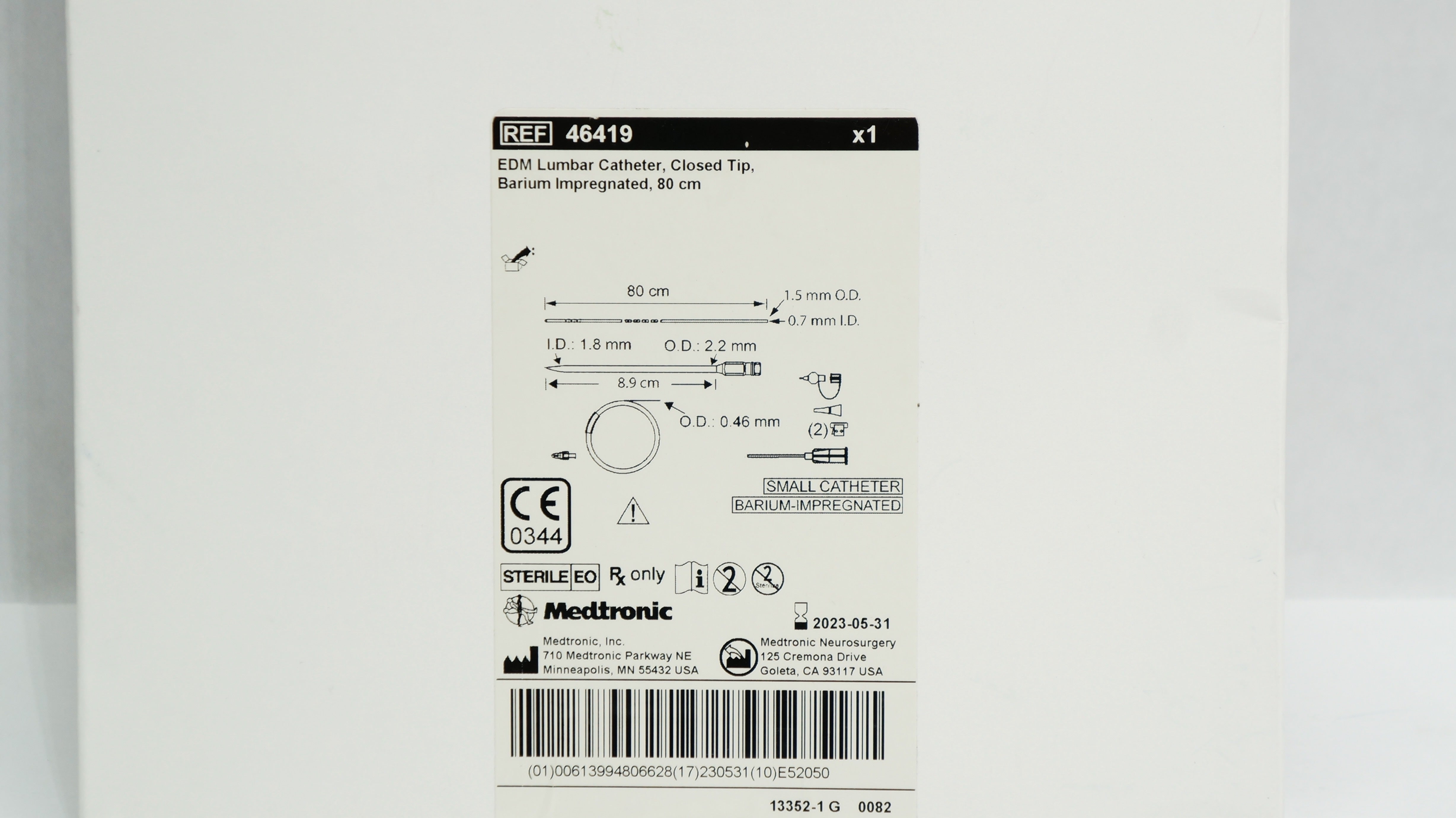 Medtronic 46419 EDM Lumbar Cath. Closed Tip, Barium Impregnated, 80cm (x)