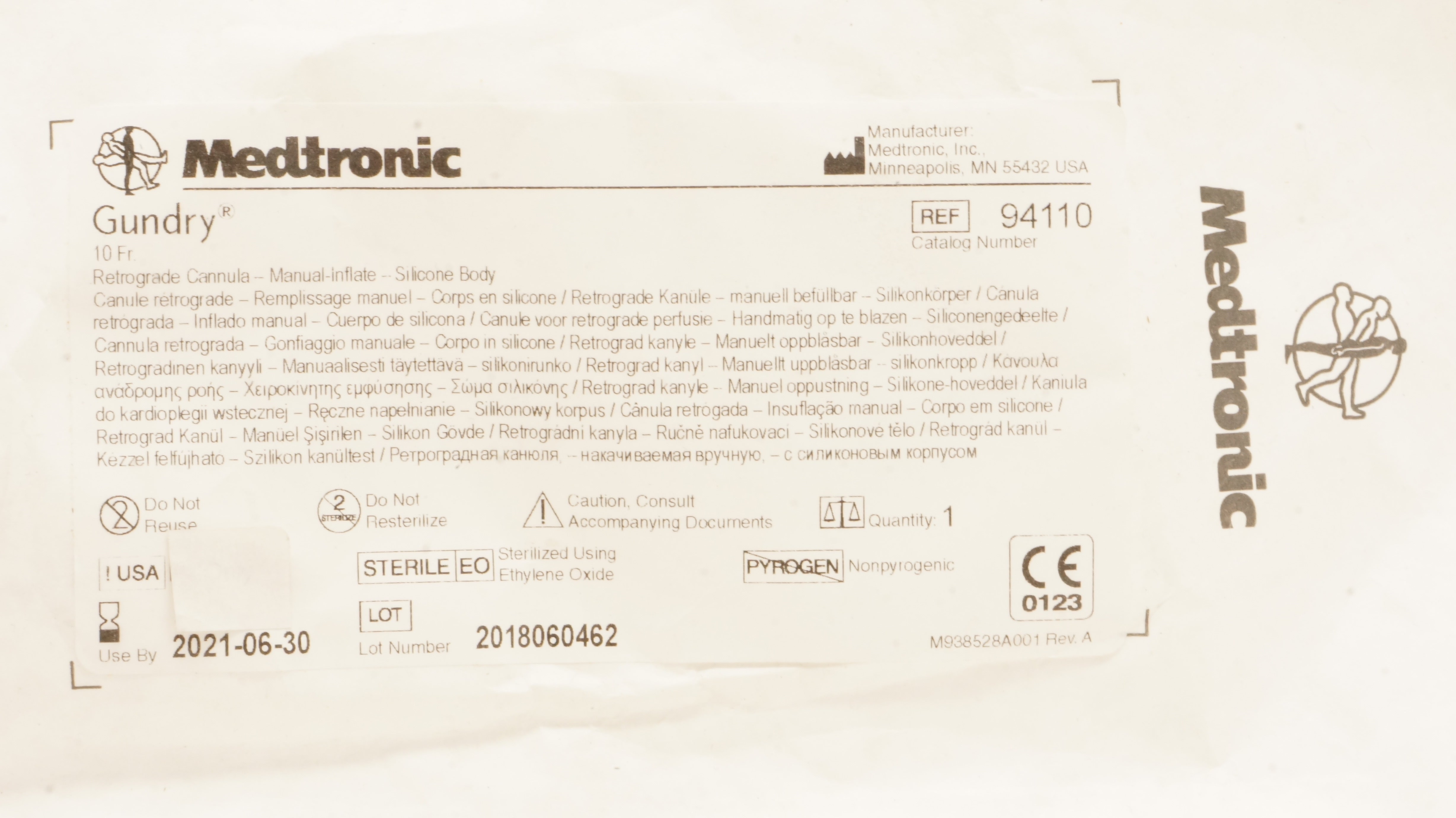 Medtronic 94110 Gundry Retrogate Cannula-Manual Inflate Silicone Body 10Fr (x)