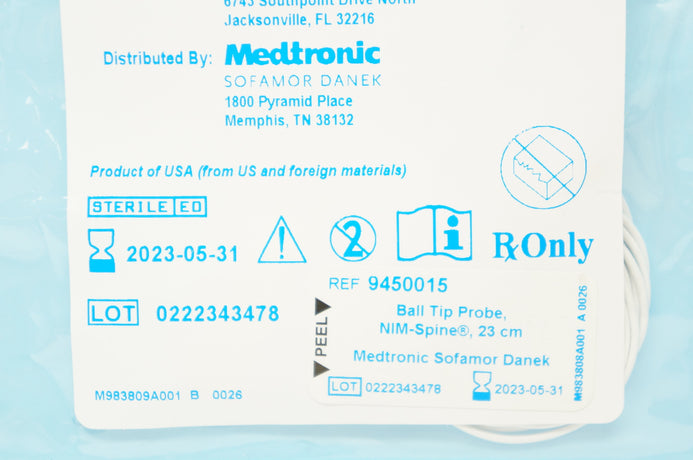 - Medtronic 9450015 Xomed Ball Tip Probe, NiM-Spine With Stimulus Return 23cm