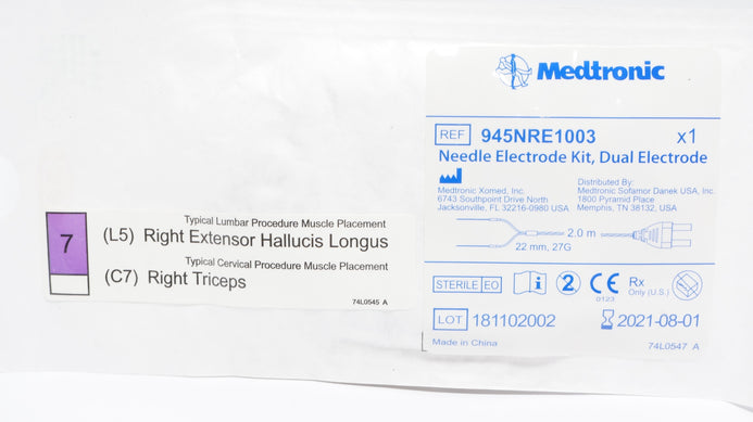 - Medtronic 945NRE1003 7 Needle Dual Elecctrode Kit, 2.0m x 22mm x 27G (x)