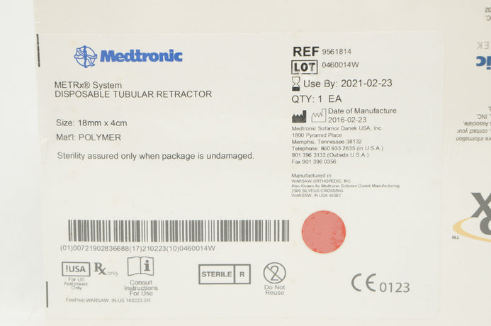 - Medtronic 9561814 Disposable Tubular Retractor 18mm x 4cm (x)