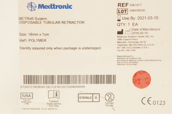 Medtronic 9561817 METRx System Disposable Tubular Retractor 18mm x 7cm