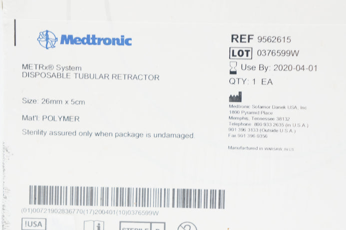 Medtronic 9562615 METRx Disposable Tubular Retractor, Polymer 26mm x 5cm (x)
