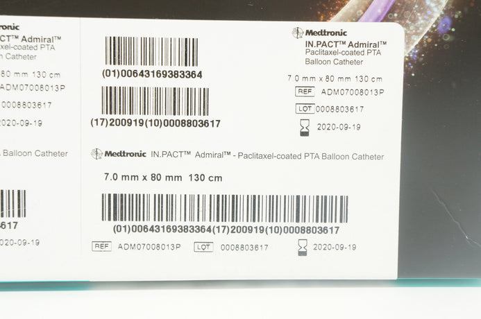 - Medtronic ADM07008013P IN.PACT Admiral PTA Balloon Cath 7.0mm x 80mm 130cm (x)