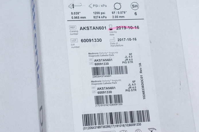 Medtronic AKSTAN601 DxTerity Angio-Kit Diagnostic Cath. 6F, JL 4.0 x 100cm (x)