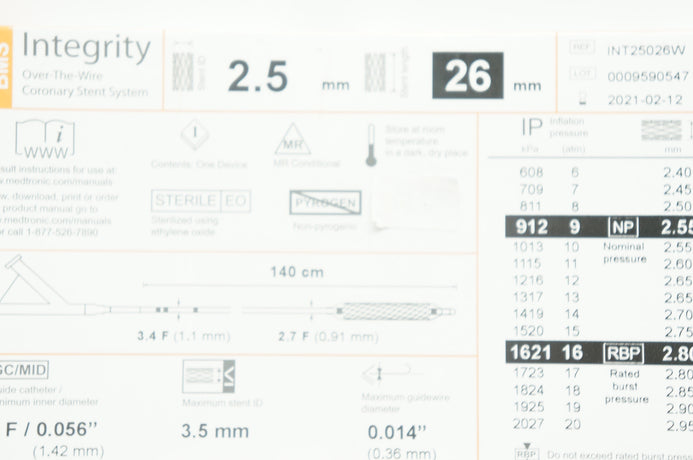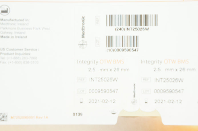 - Medtronic INT25026W Integrity OTW BMS Coronary Stnt System 2.5mm x 26mm (x)