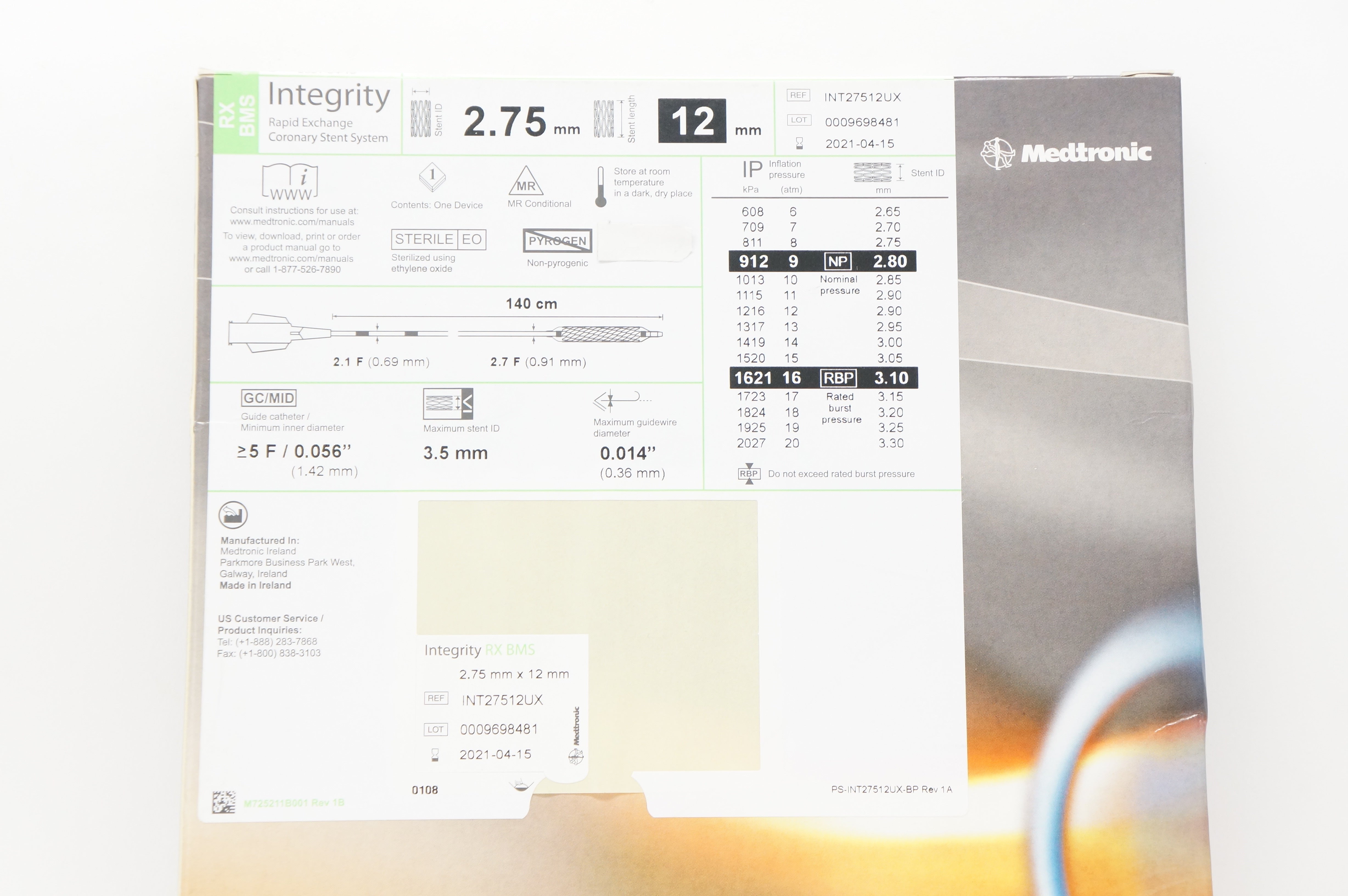 Medtronic INT27512UX Integrity Rapid Exchange Coronary Stnt System 2.75x12mm(x)