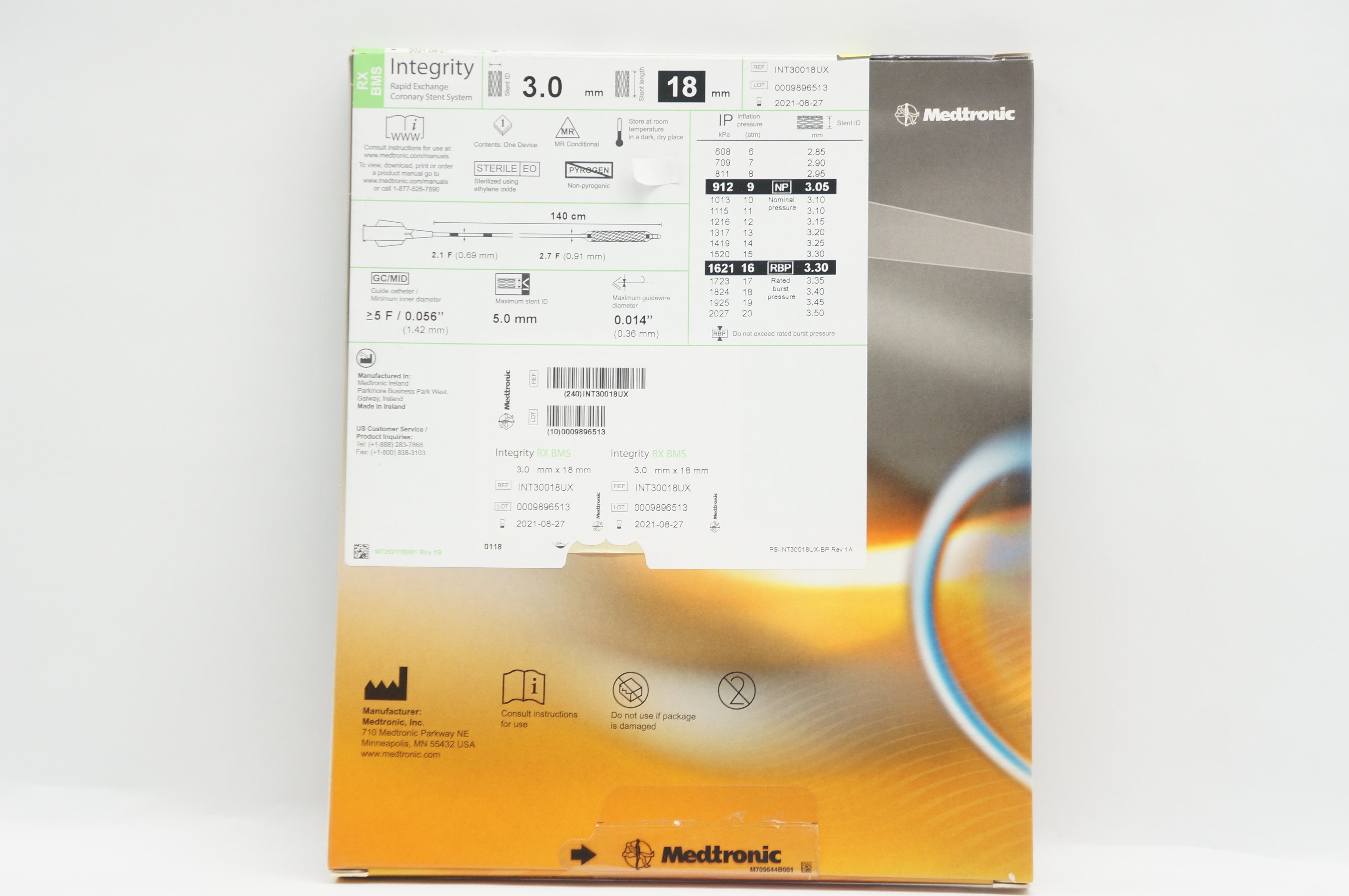 Medtronic INT30018UX Integrity Rapid Exchange Coronary Stent System 3.0x18mm