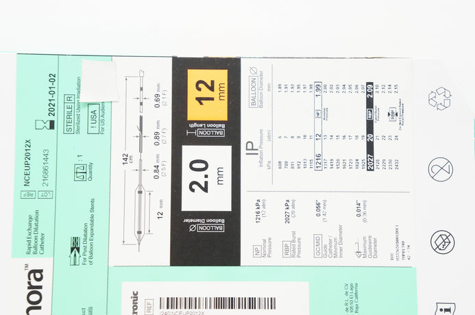 - Medtronic NCEUP2012X NC Euphora RX Balloon Dilatation Cath. 2.0mm x 12mm (x)