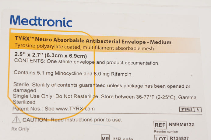 Medtronic NMRM6122 TYRX Neuro Absorbable Antibacterial Envelope - Medium (x)