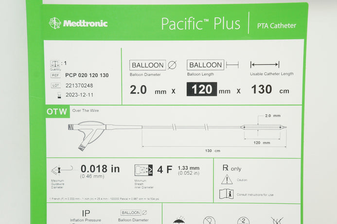 - Medtronic PCP020120130 Pacific Plus PTA Cath. 2.0mm x 120 mm x 130cm