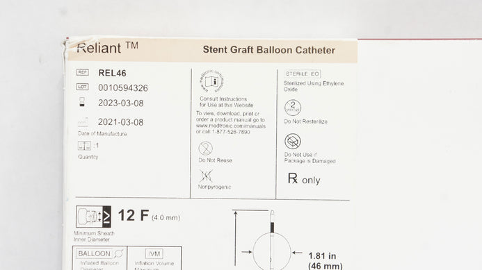- Medtronic REL46 Reliant Stnt Graft Balloon Cath. 12F x 1.81inch x 100cm (x)