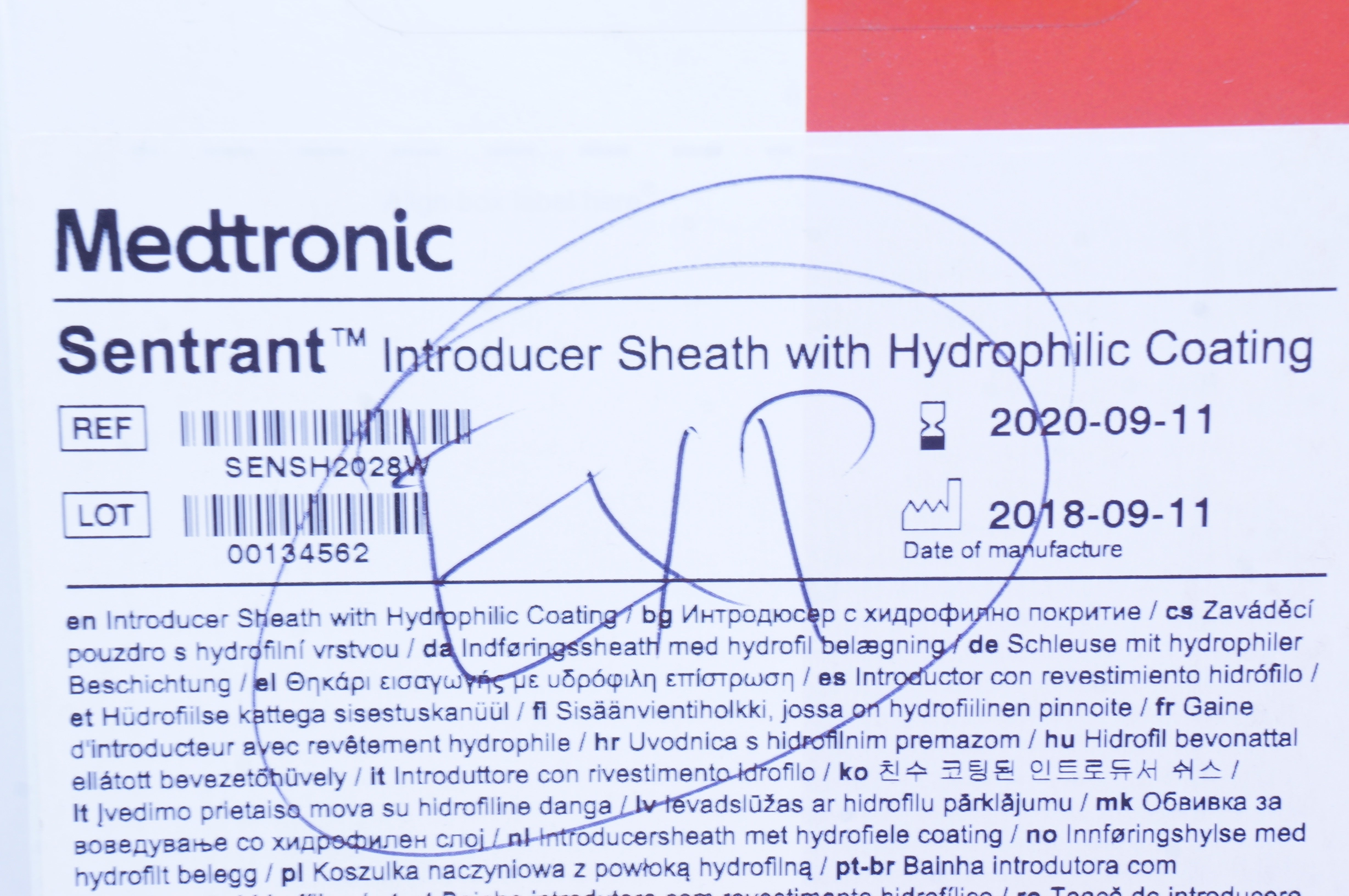 - Medtronic SENSH2028W Sentrant Introducer Sheath with Hydrophilic 20 Fr. (x)