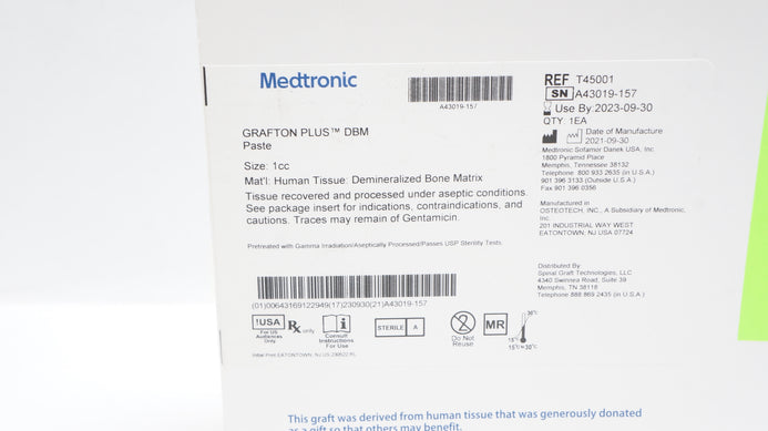 Medtronic T45001 Grafton Demineralized Bone Matrix Plus DBM Paste 1cc
