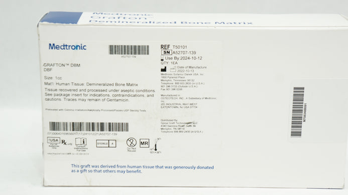 - Medtronic T50101 Grafton Human Tissue Demineralized Bone Matrix, Size 1cc