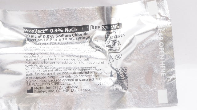 - MedXL 3705-1US Praxiject 10mL of 0.9% NaCl Injection USp In a 10mL Syringe