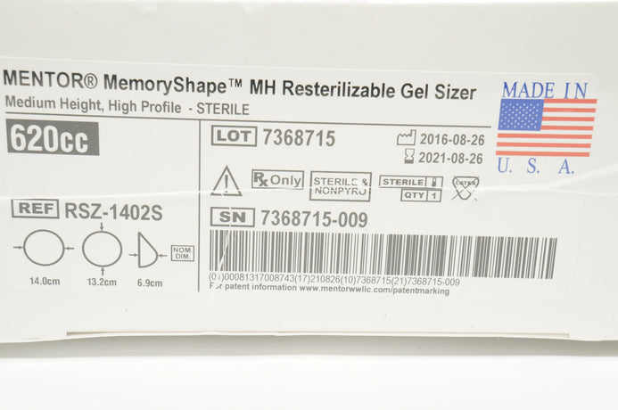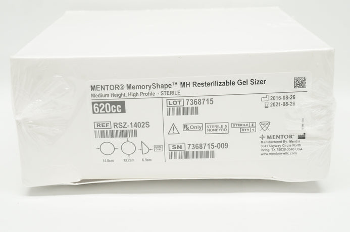 - Mentor RSZ-1402S Memory Shape MM+ Resterilizable Gel Sizer 620cc (x)