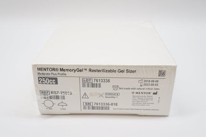 - MENTOR RSZ-2501S MemoryGel Resterilizable Gel Sizer 250cc, 3.4cm x 11.3cm