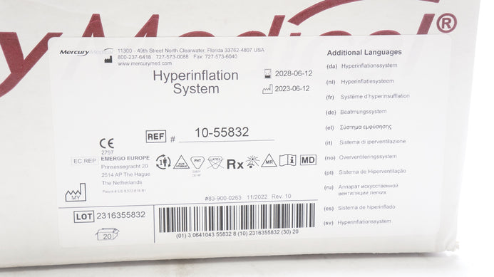 - Mercury Medical 10-55832 Hyperinflation System - Box of 20