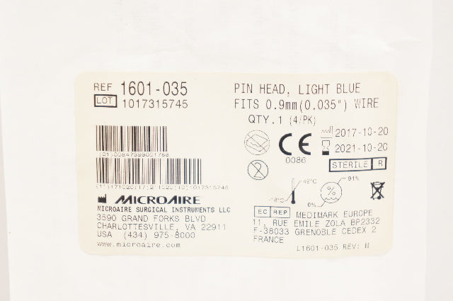MicroAire 1601-035 Pin Head, Light Blue Fits 0.035inch Wire (x)