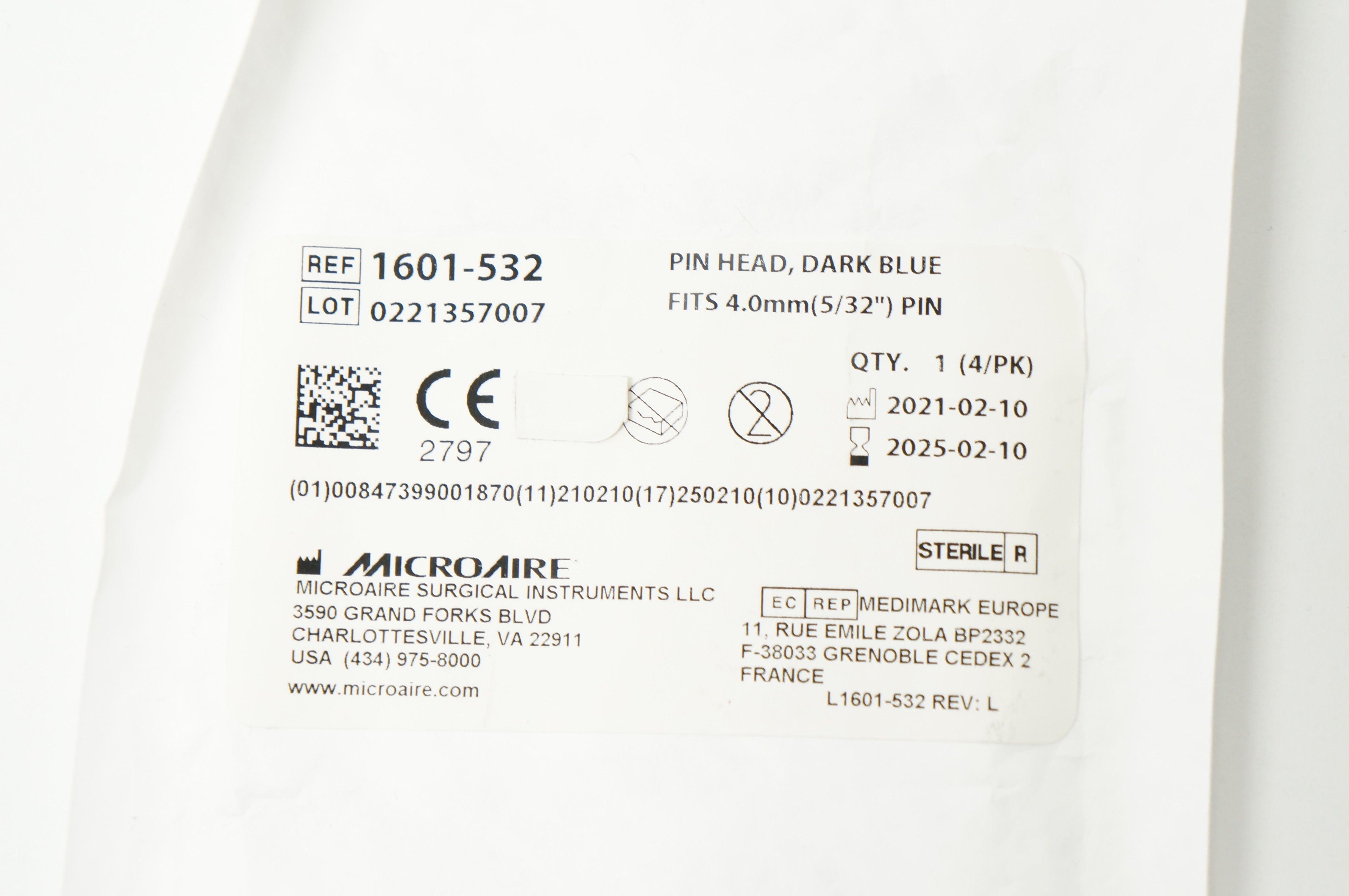MicroAire 1601-532 Pin Head, Dark Blue, Fits Pin 5/32inch