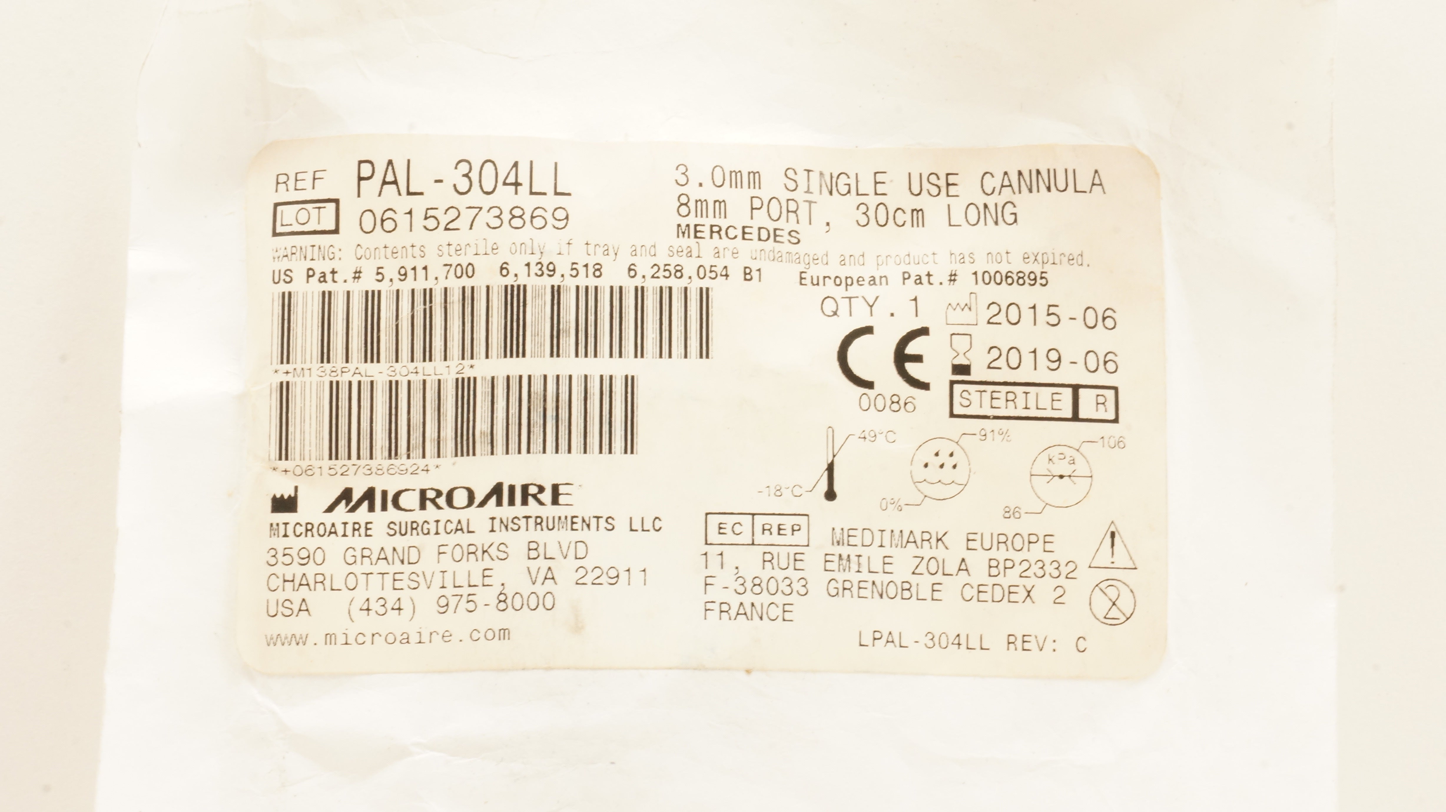 - Microaire PAL-304LL 3.0mm Single Use Cannula 8mm Port 30cm Long (x)