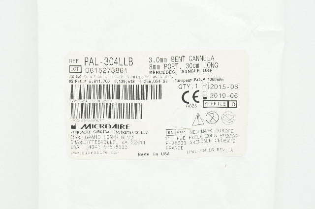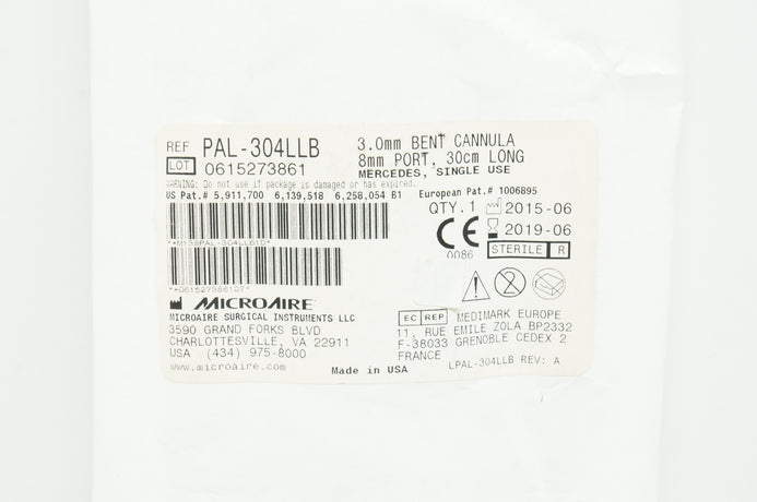 Microaire PAL-304LLB 3.0mm Bent Cannula 8mm Port 30cm Long, Mercedes (x)