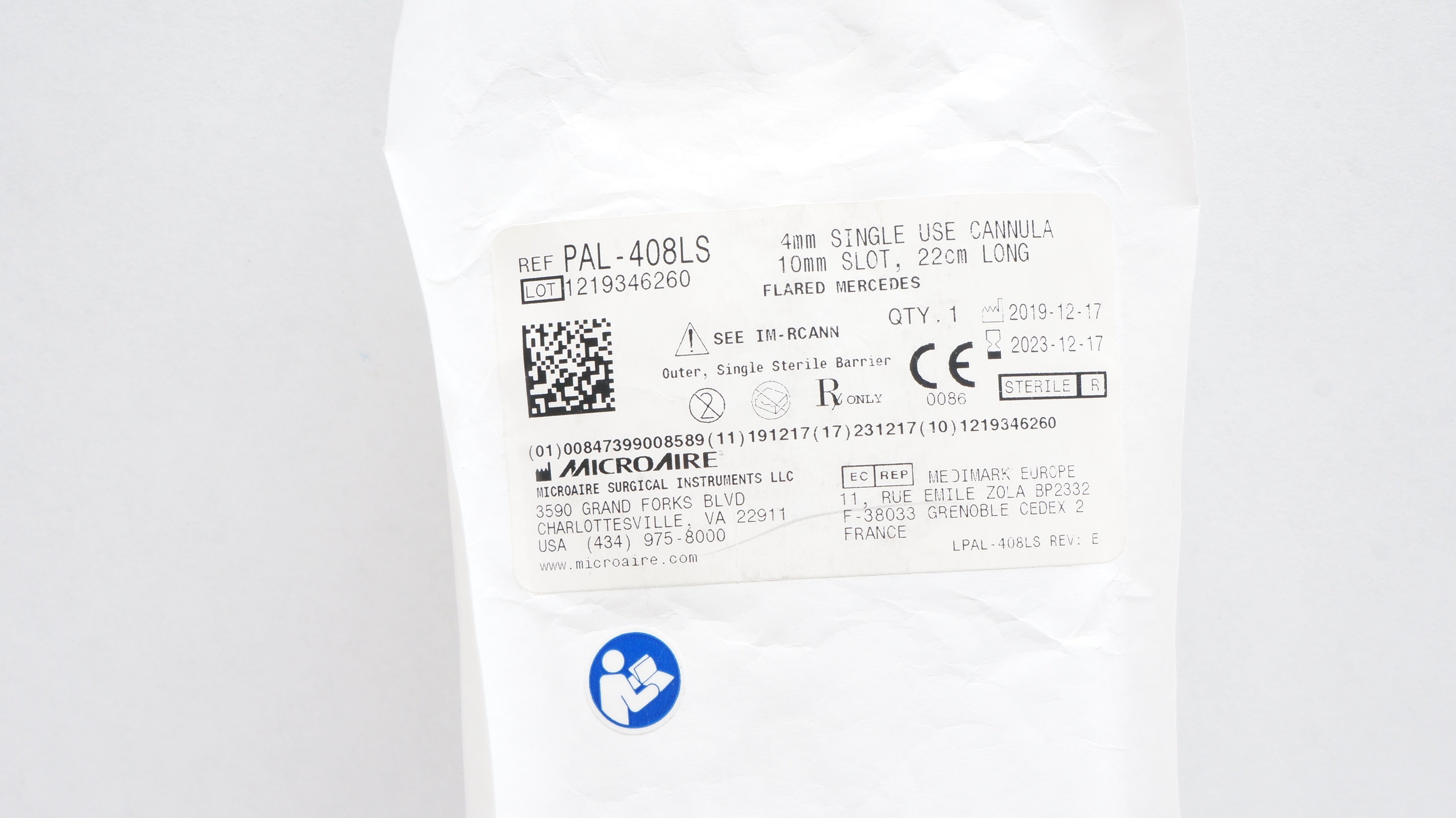 - MicroAire PAL-408LS 4.0mm Cannula 10mm Port 22cm Long (x)