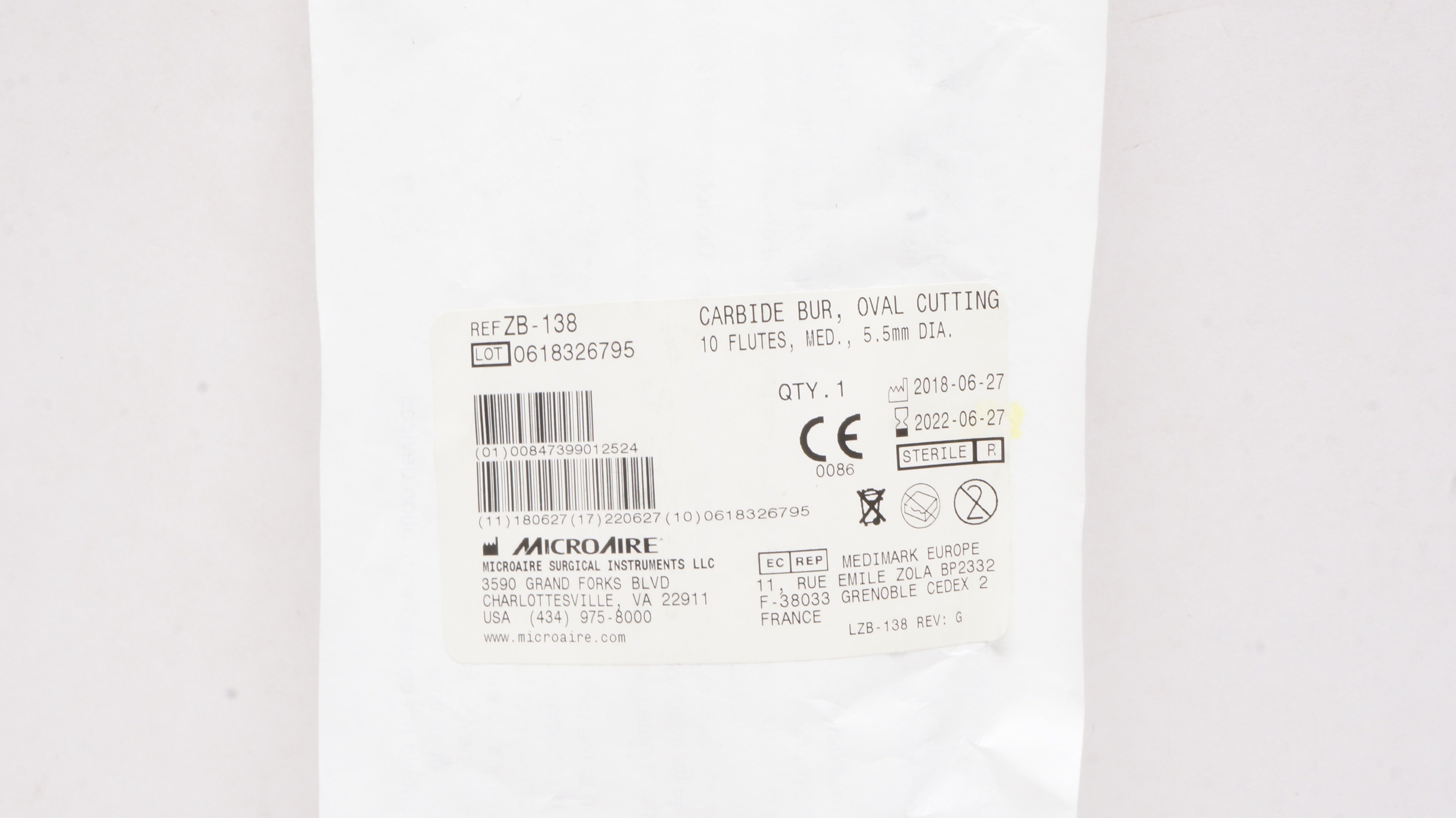 MicroAire ZB-138 Carbide Bur, Oval Cutting 10Flutes, Medium, 5.5mm