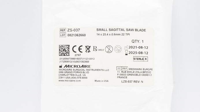 - Microaire ZS-037 Small Sagittal Saw Blade 14 x 25.4 x 0.6mm 22 TPI (x)
