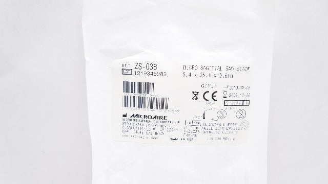 - MicroAire ZS-038 Micro Sagittal Saw Blade 9.4 x 25.4 x 0.6mm (x)